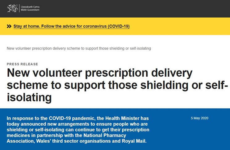 We are proud to announce that Pro Delivery Manager will be made available to pharmacies, dispensing doctors and volunteers across Wales in support of the new volunteer prescription delivery scheme to support those shielding or self-isolating due to Covid-19 lockdown as announced by Vaughan Gething, Welsh Minister for Health and Social Services on 5 May.