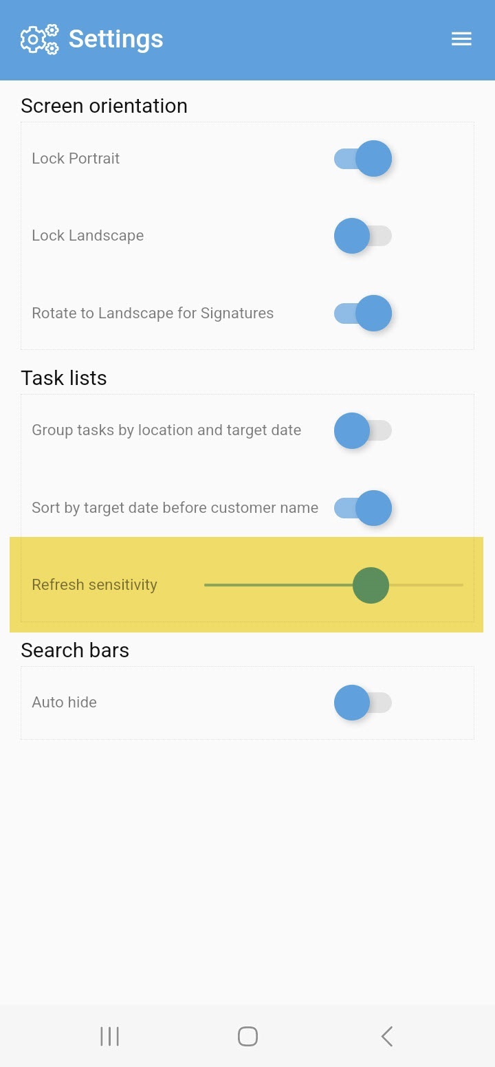 To access it, after logging into PDM App, go to Menu > Settings. Use the slider to set the refresh sensitivity.