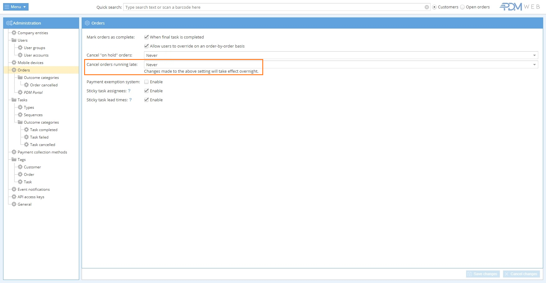 PDM V3 Upgrades: Automatically delete orders marked “Running late”