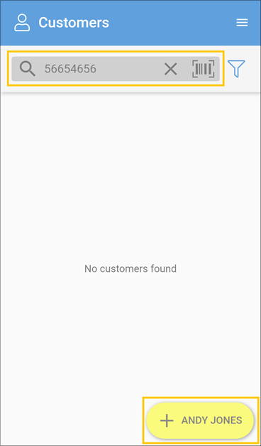 Scan the 2D barcode into the Customer search bar (click on barcode icon to activate the scanner).