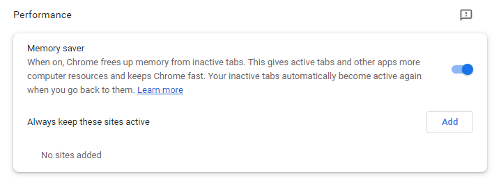 Chrome Memory Saver mode is a new feature released by Google that has been designed to free up memory from tabs not currently in use so that the active website being browsed has a smoother experience. Inactive tabs are reloaded when needed.