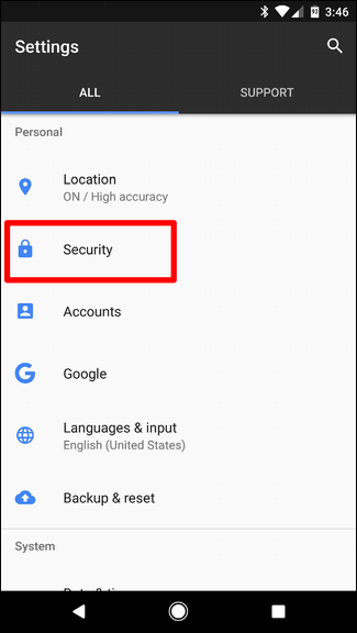 From there, scroll down and tap on Security.