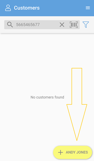In the Customers module, tap the barcode scanner icon shown next to the search box. This will switch on your device camera to scan the barcode.