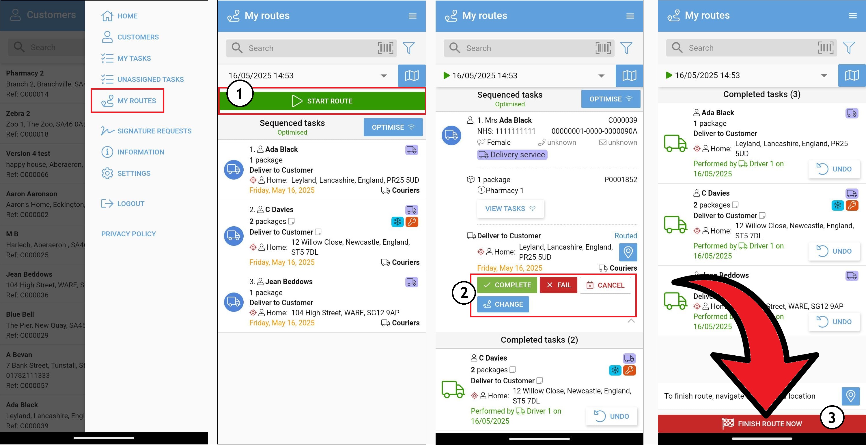 3. Complete the DeliveriesYour newly created route will now appear in My Routes (tap the ☰ menu top-right).