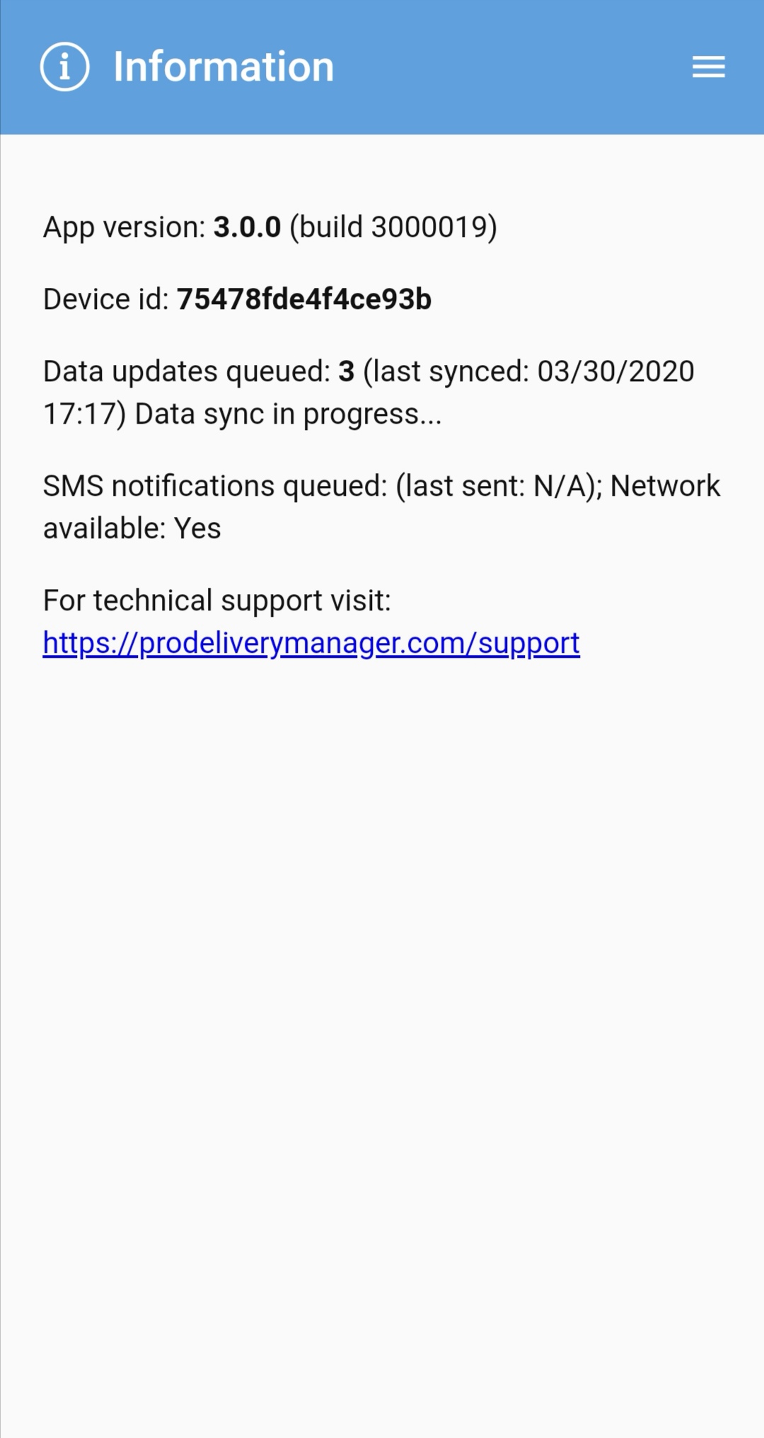 Here you can see information about the app, including which version of the app you’re running, your device ID, the data synchronisation status, and the SMS notifications status.
