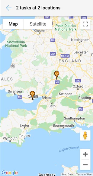 to see the physical locations for the selected tasks.
