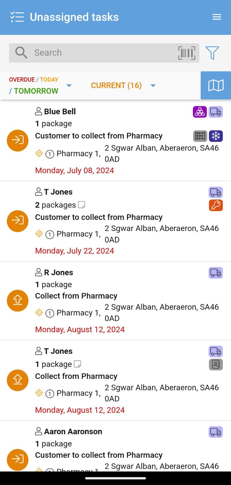 The Unassigned Tasks screen shows you any tasks for your associated entities that are yet to be assigned. This allows PDM App users to pick up on these tasks and make sure none are left outstanding.