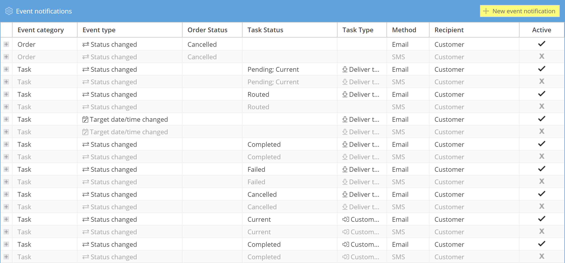 There are a number of active event notifications already in place for new users which are set to notify customers of any changes to their order via email. Notifications can cover a wide variety of order and task events, be sent via email and/or SMS, and can be sent to customer contacts, PDM users, entities or a custom recipient.
