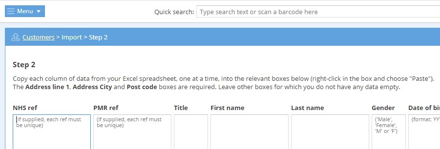 The second step is to copy the data from each column in your existing spreadsheet into the relevant PDM Web columns.