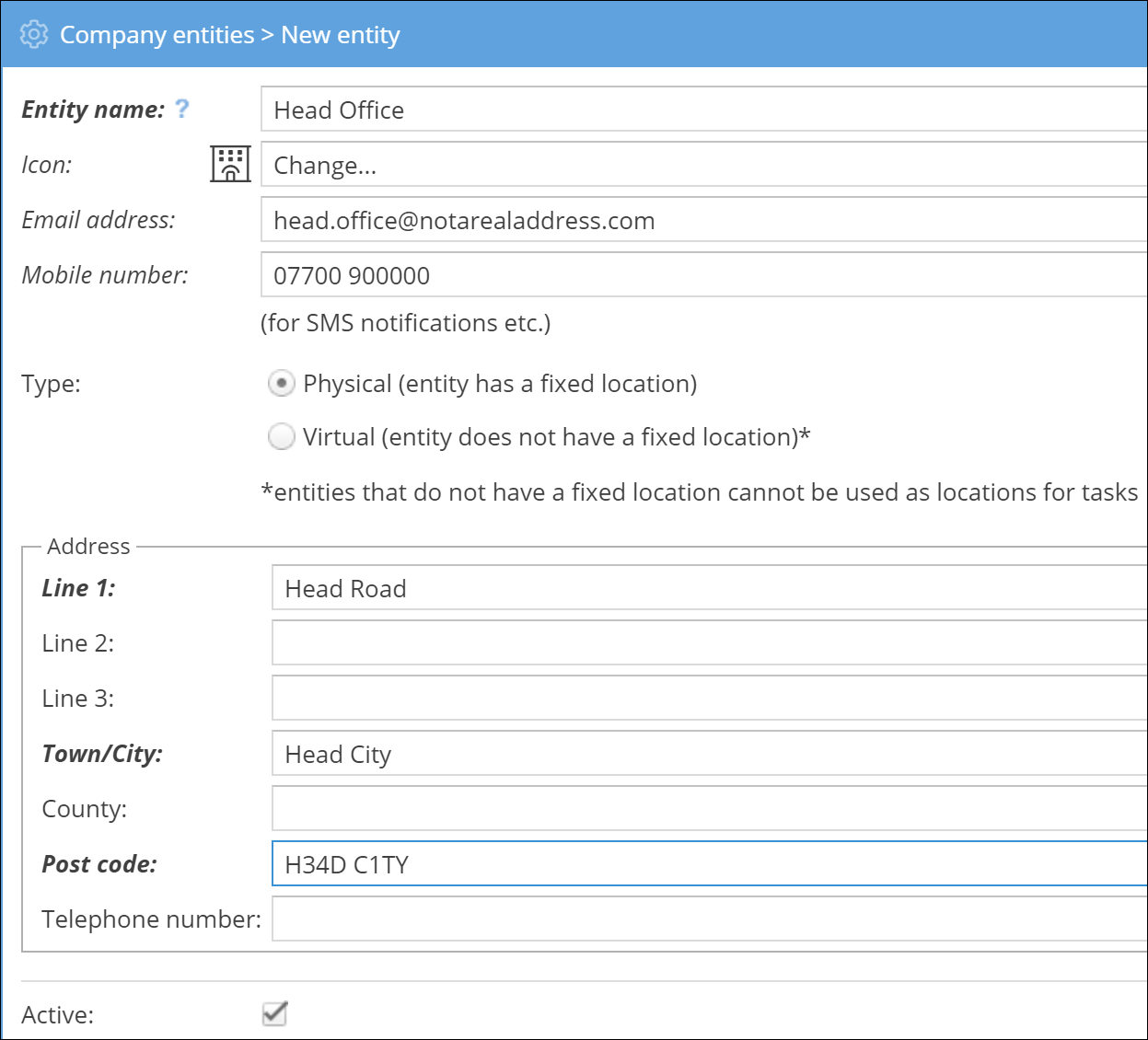 When you open PDM for the first time, you’ll have a default entity already. In this scenario, we recommend your first entity represents your head office. Check the details are correct and save any changes necessary (see the tutorial: Creating Your First Entity for detailed instructions).