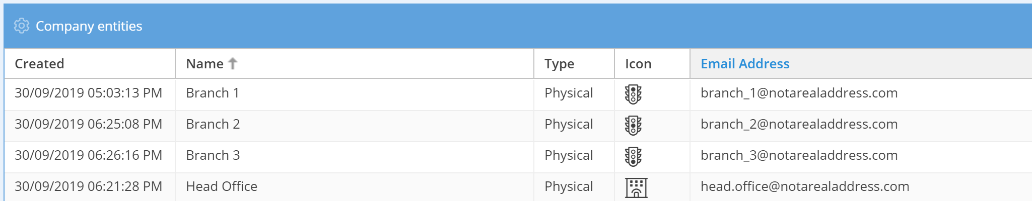 When you’ve finished, your list of Company Entities (under the Administration menu) should look something like this: