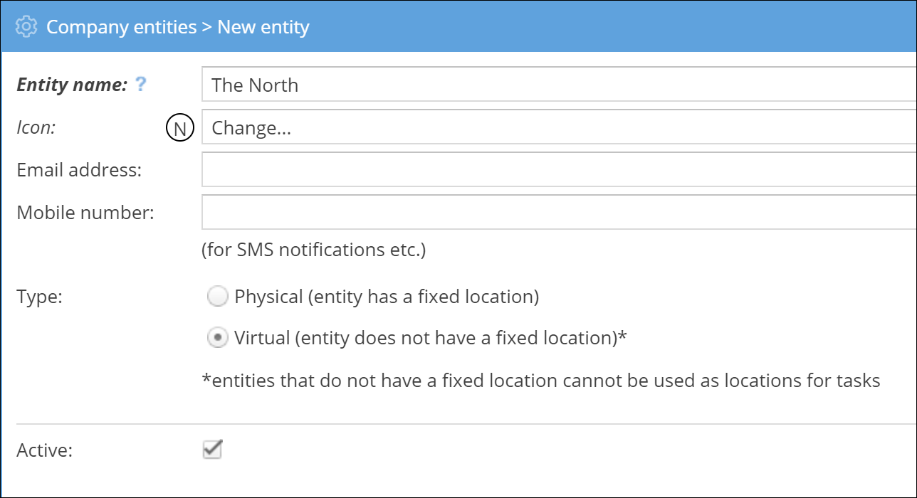 Along with the physical entities you’ve created for your business, you can also create virtual entities, which aren’t tied to a specific physical location.