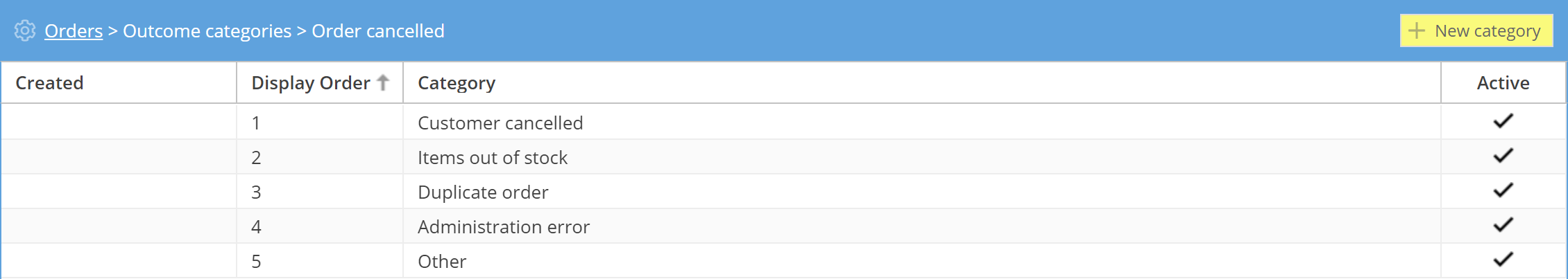 There are five cancelled order categories by default, but you can easily add more categories if necessary. Click on the yellow + New category button and fill in the description.