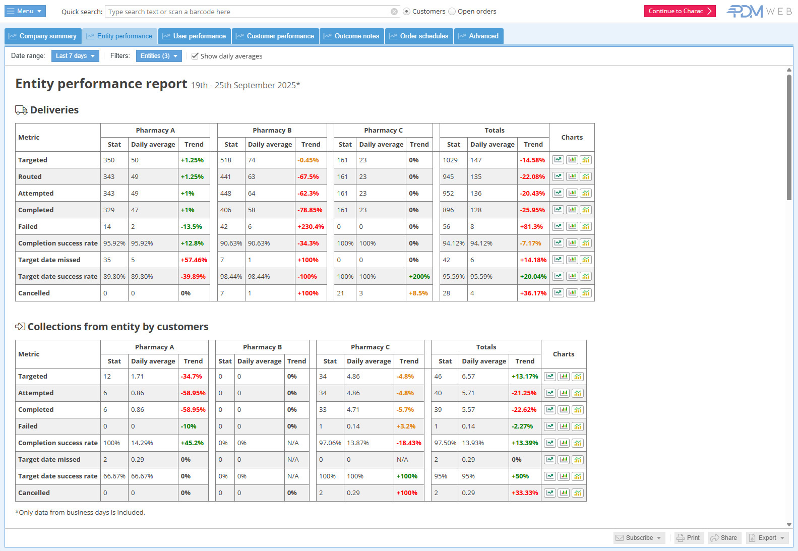 This report is great for comparing performance of a single pharmacy over time or multiple pharmacies at a glance.