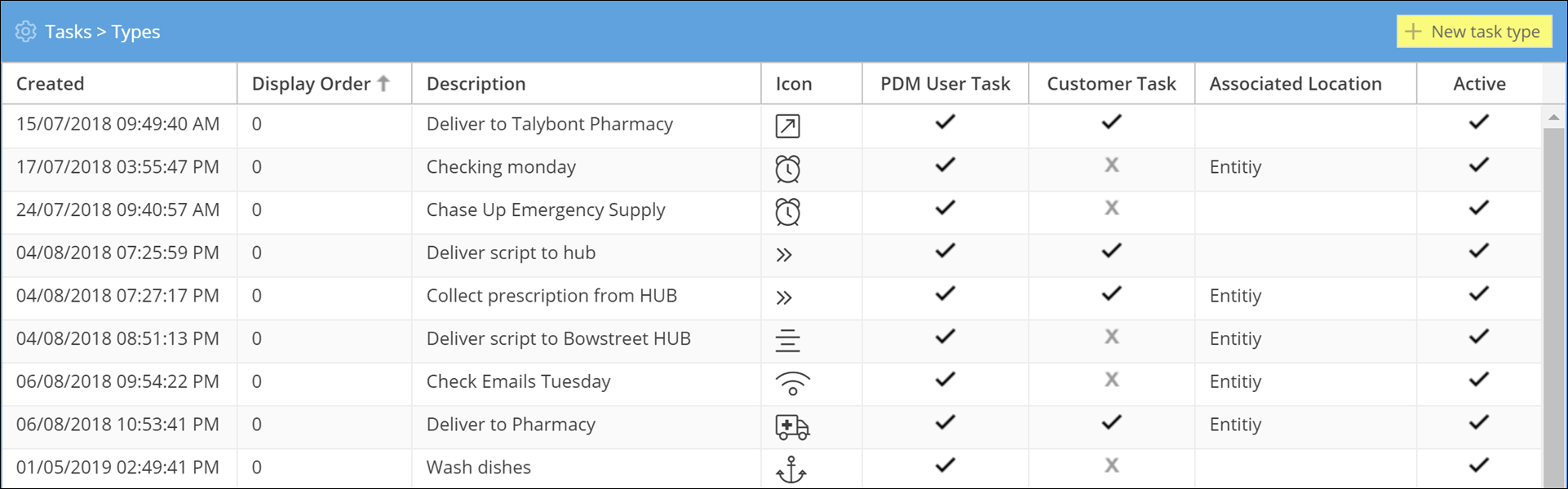 In the top right corner, click on the yellow + New task type button.